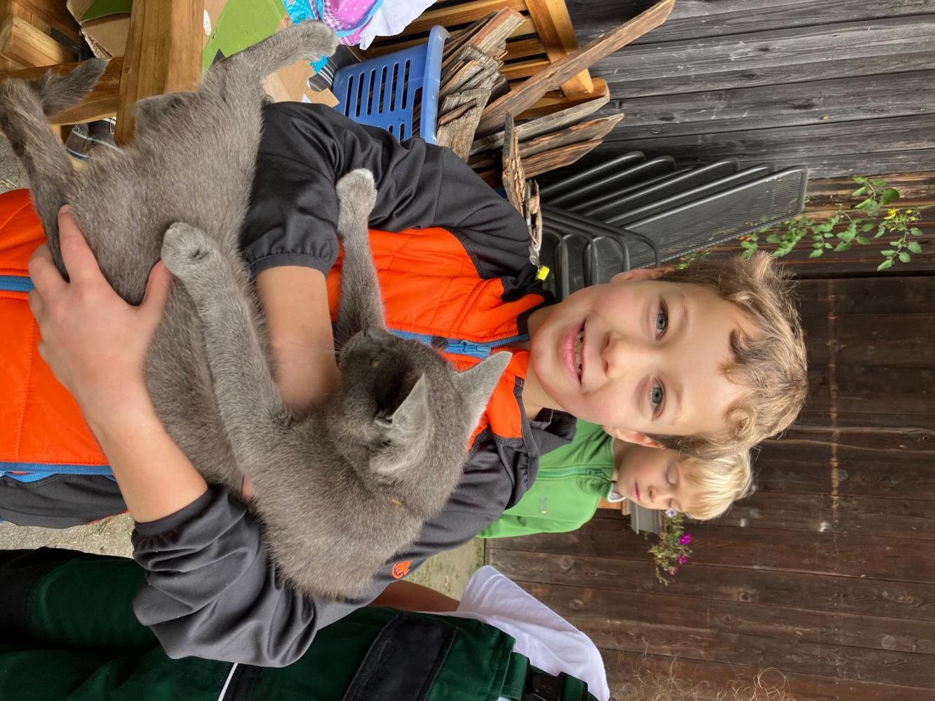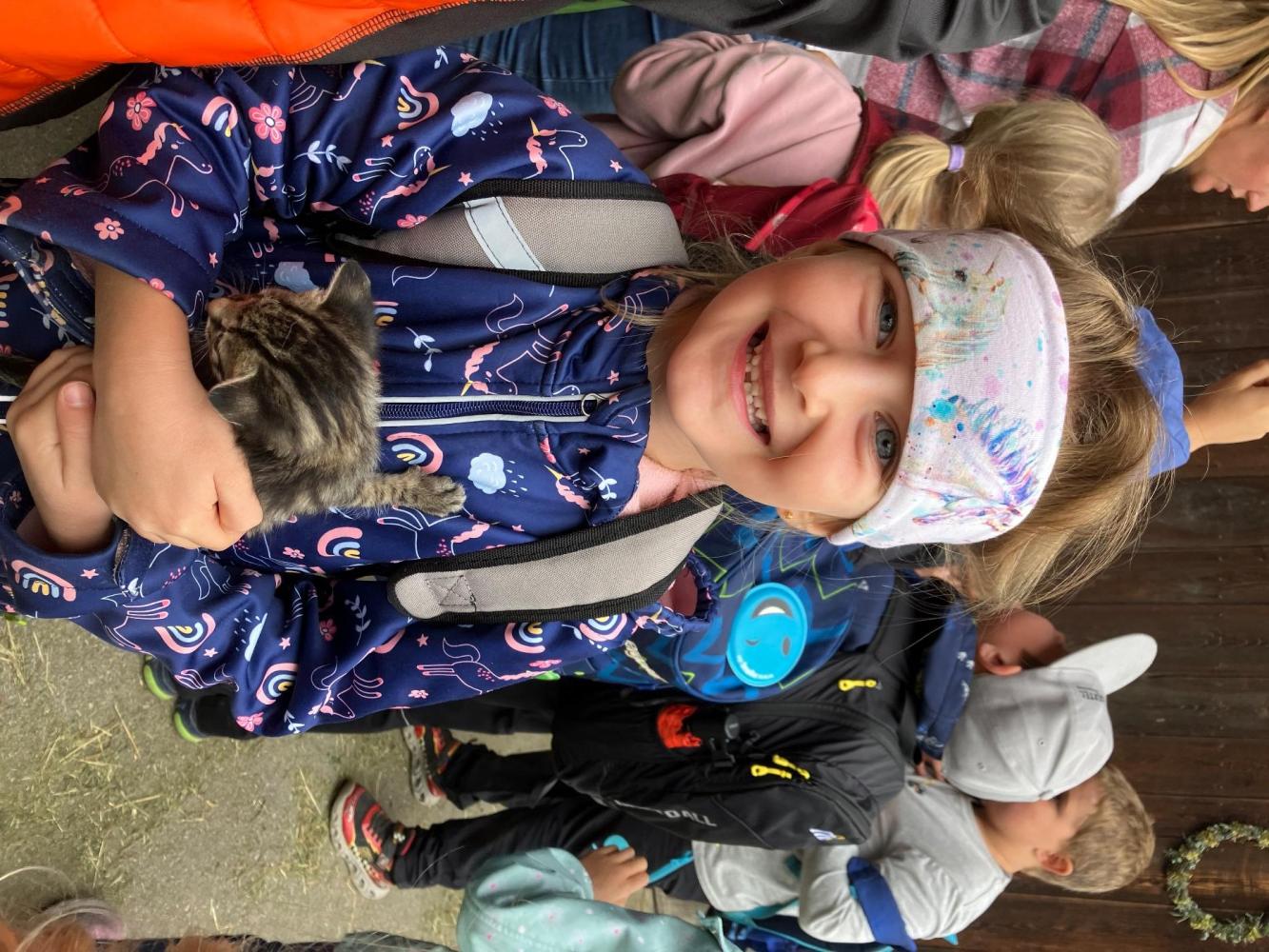 Natürlich blieb auch genügend Zeit, den Bauernhof zu erkunden. Wir sahen Kühe, Hühner und ein Pony. Besonders begeistert waren die Kinder von den kleinen Babykatzen, die sich schon streicheln ließen. Ein ganz besonderes Erlebnis war außerdem das zahme Reh Heidi, das uns vorsichtig beschnupperte.