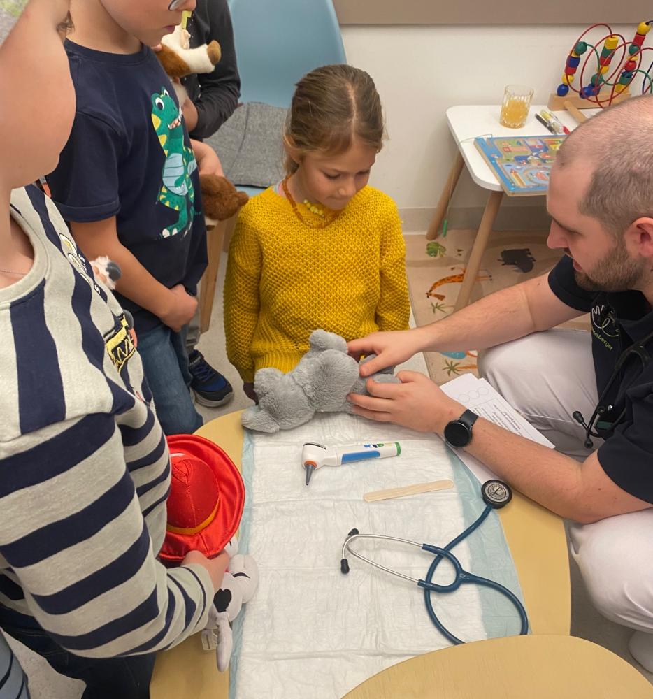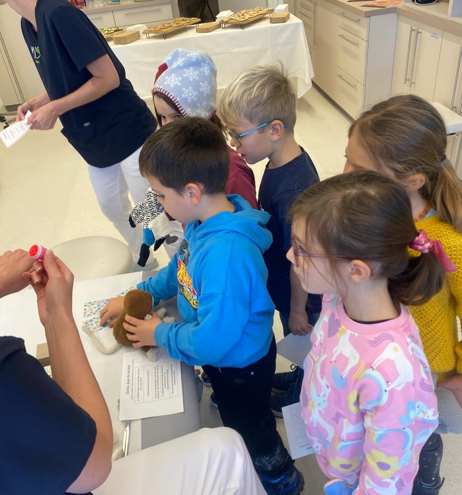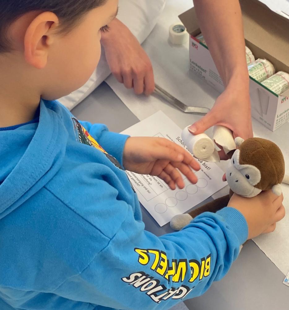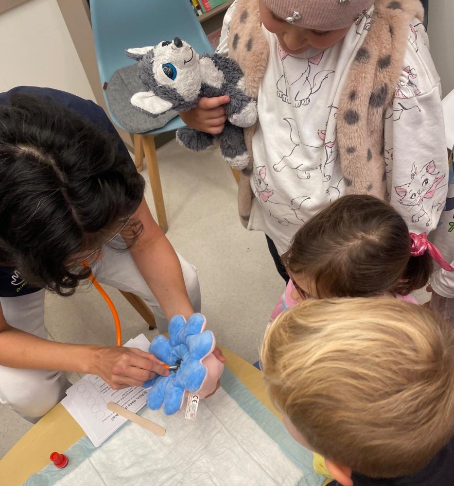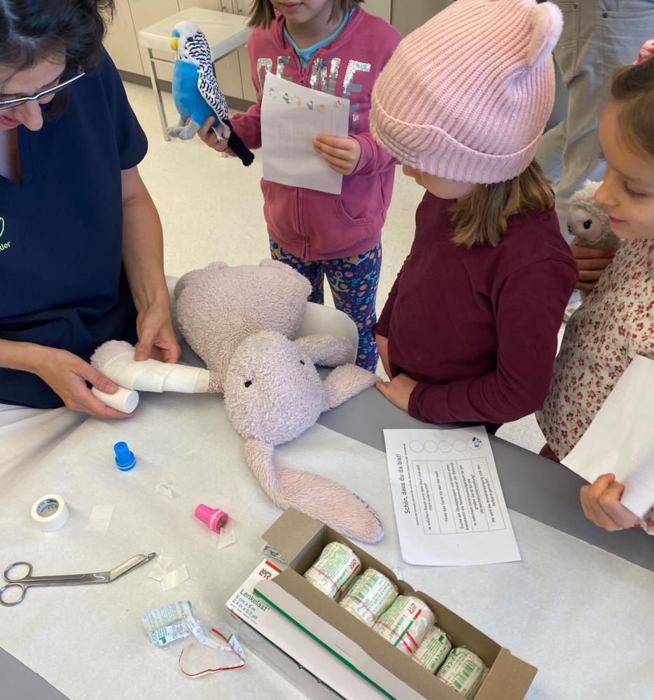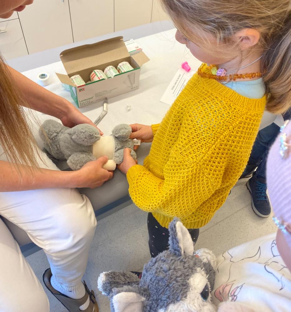 Heute waren wir zu Besuch im Teddybärkrankenhaus der Praxisgemeinschaft Dr. Winkler / Dr. Hausberger. Die Kinder brachten ihre „kranken“ Kuscheltiere mit, die vor Ort liebevoll untersucht und behandelt wurden. Dabei konnten die Kinder verschiedene Räume kennenlernen, medizinische Abläufe spielerisch erleben und selbst bei der Behandlung helfen.