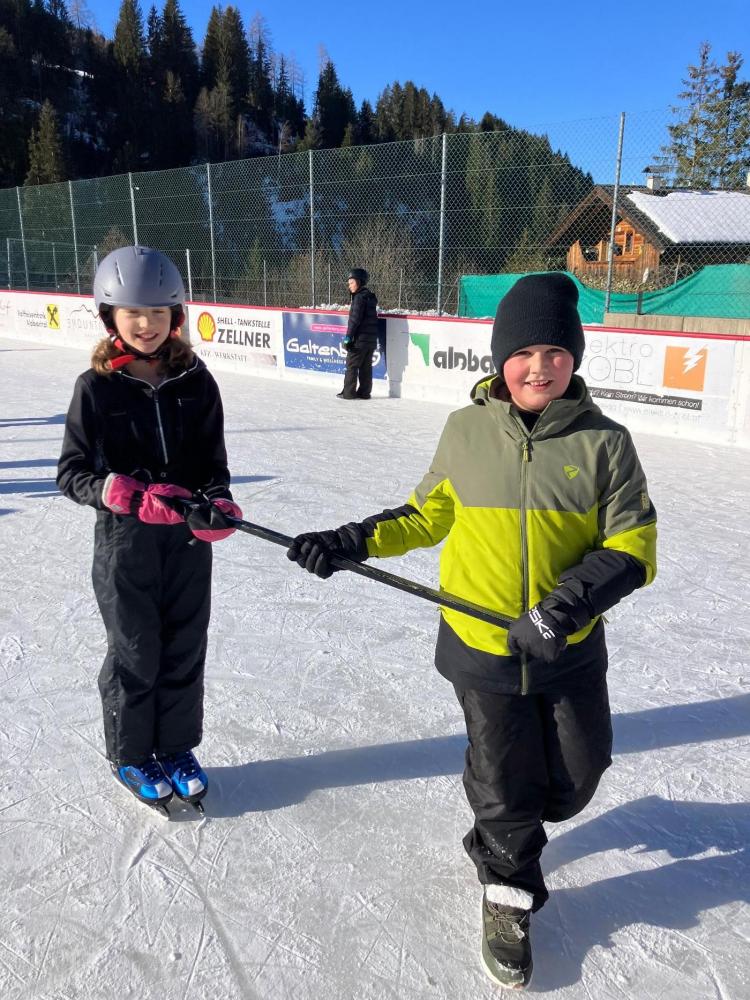 Kurz vor den Semesterferien ging es für die 2a und 4b Klasse nach Alpbach zum Eislaufplatz. Mit viel Ehrgeiz und Motivation waren die Schülerinnen und Schüler dabei.