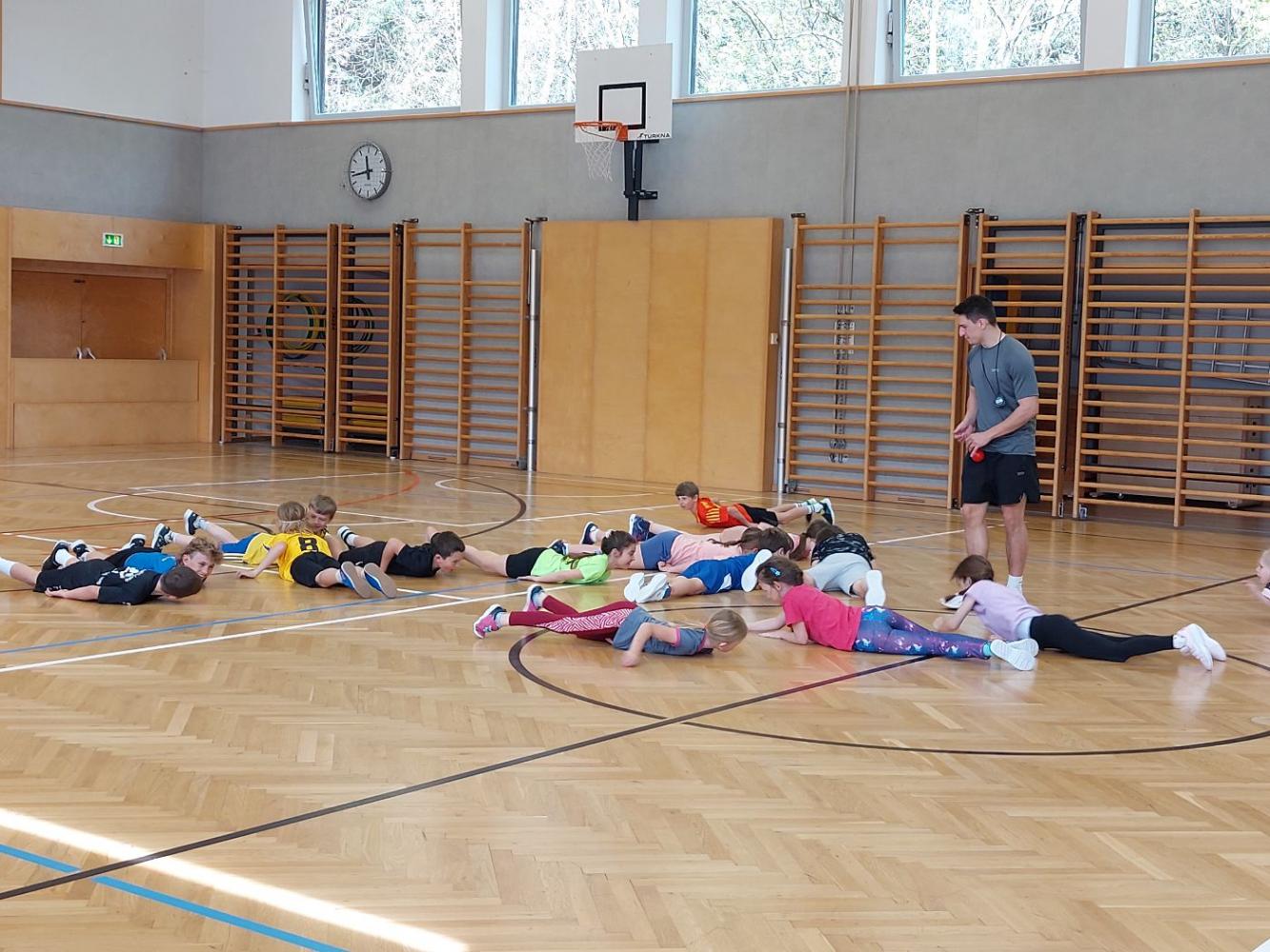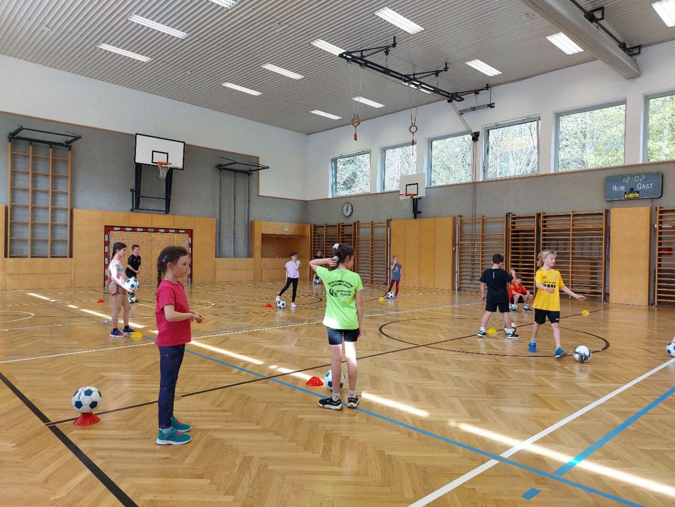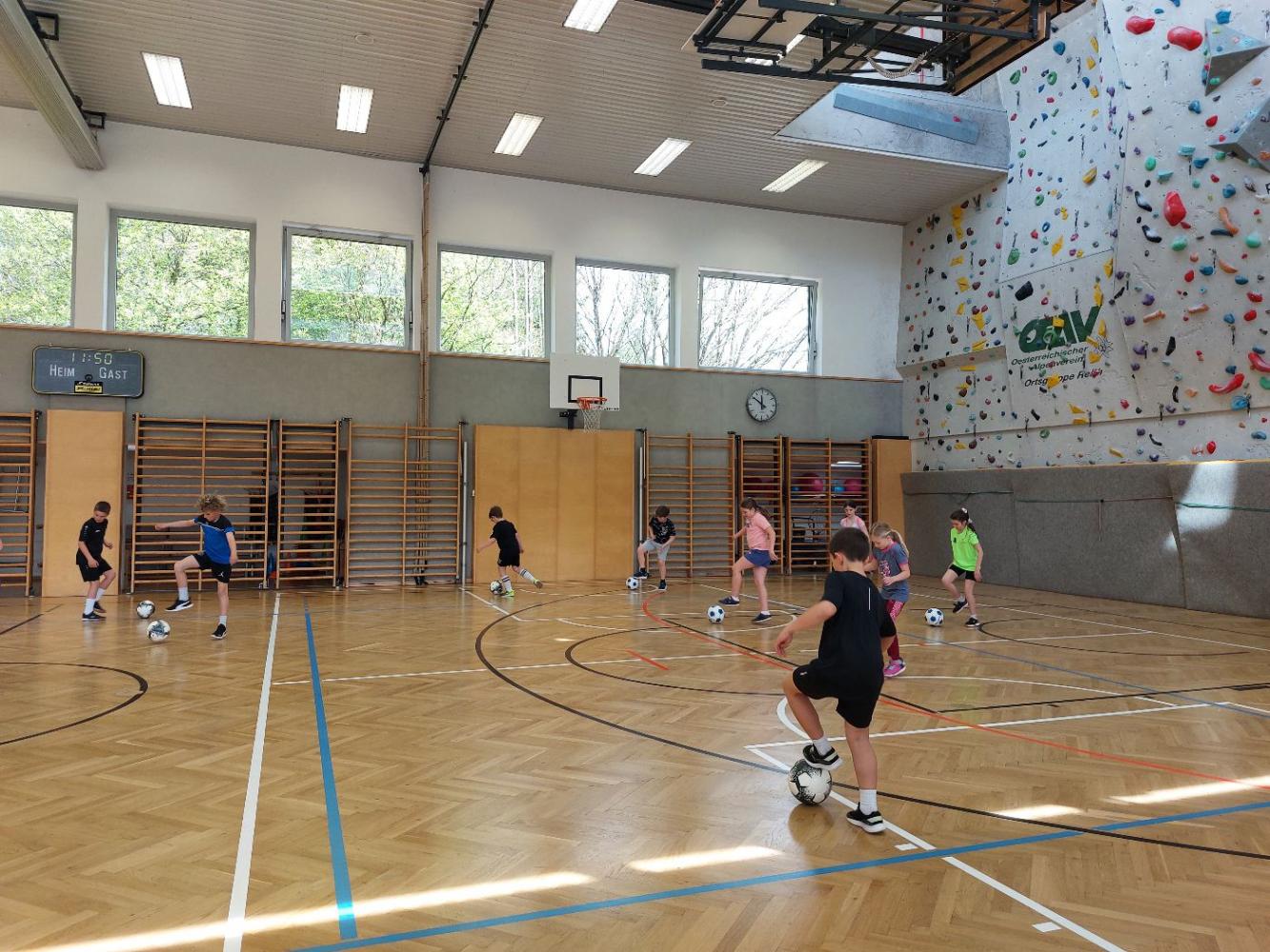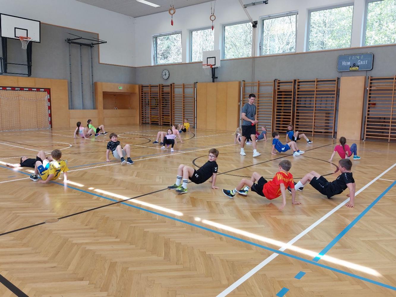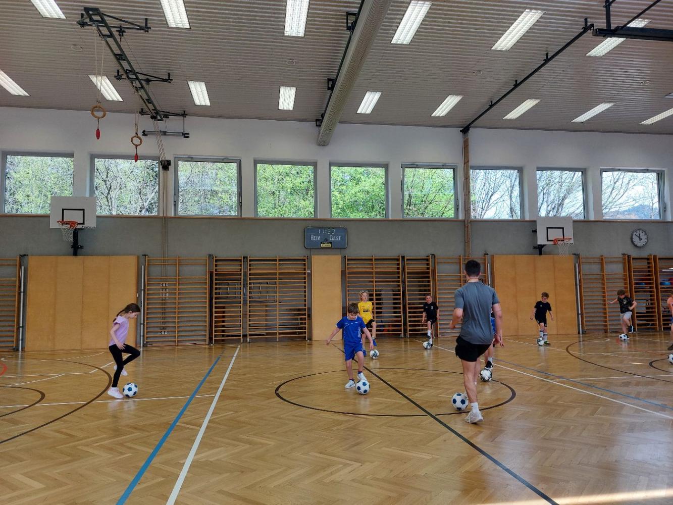In der heutigen Turnstunde gab es eine Fußball-Schnupperstunde mit Fußballtrainer Elias.
