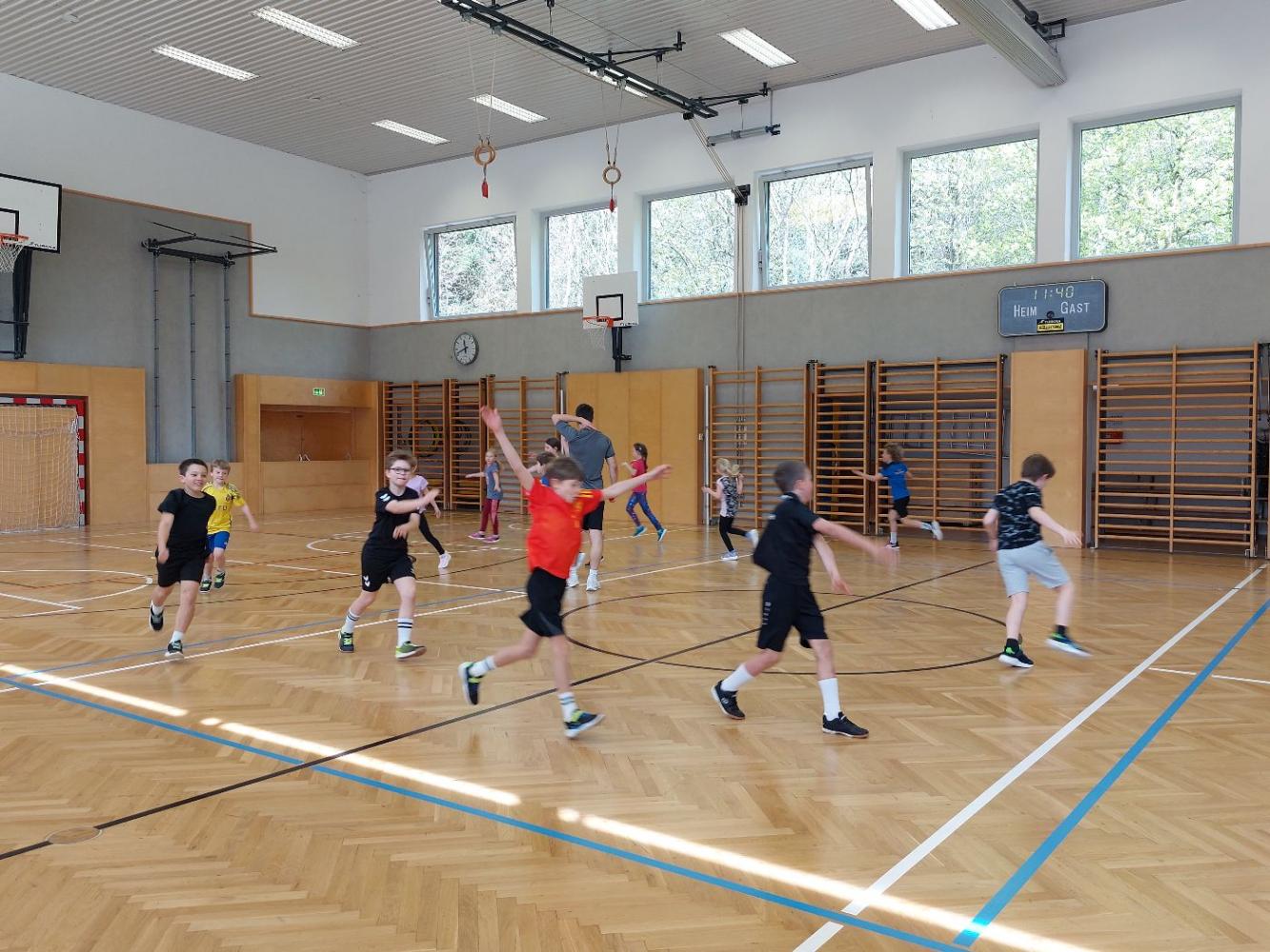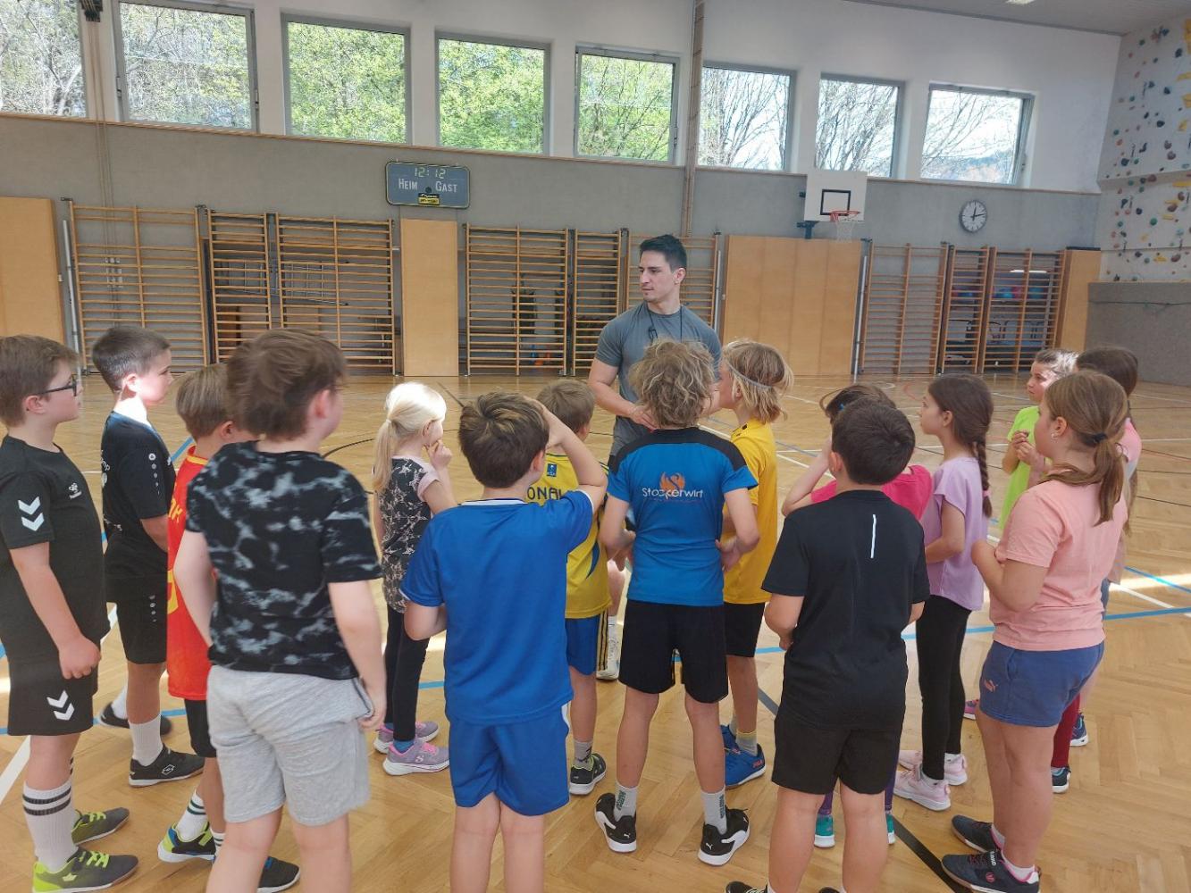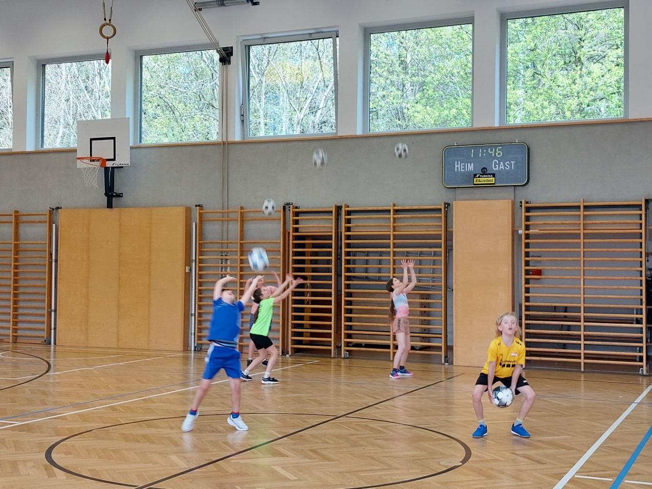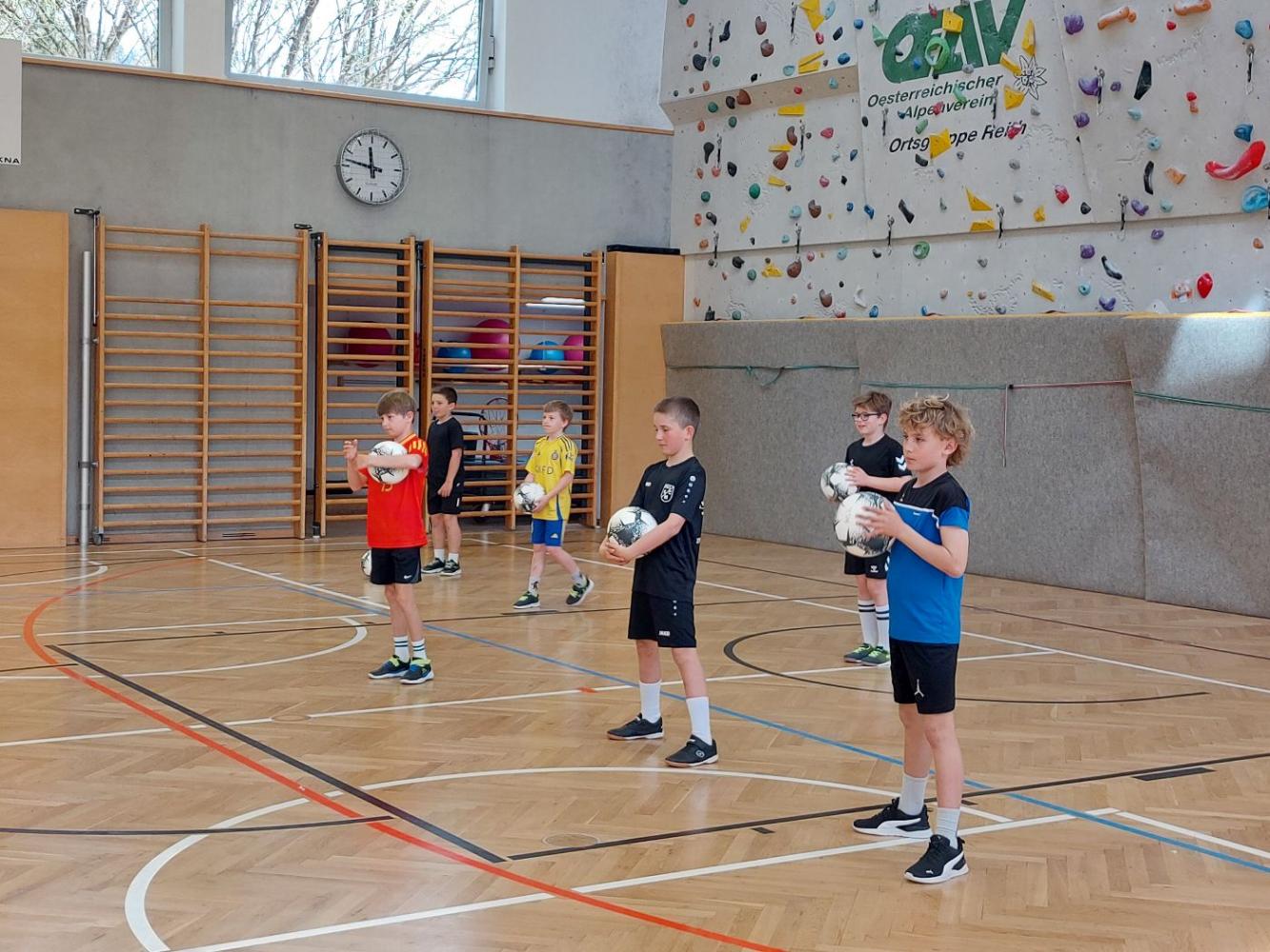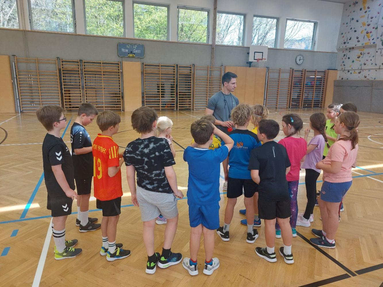 In der heutigen Turnstunde gab es eine Fußball-Schnupperstunde mit Fußballtrainer Elias.