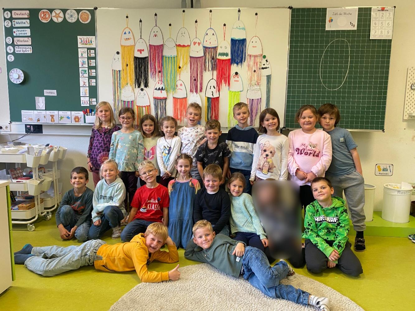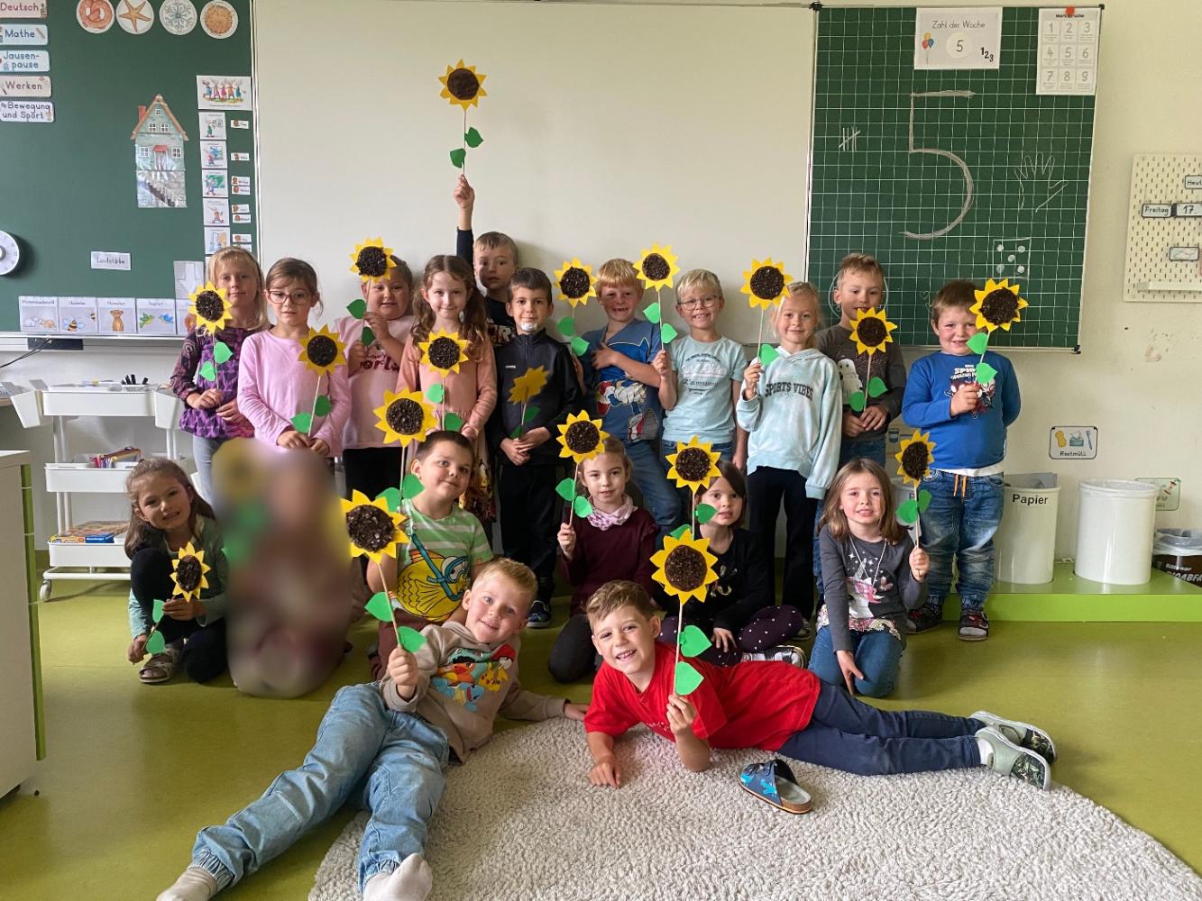 Herbstbastelei von Julia Stöckl 28. Oktober 2025 1a Im Herbst hat die 1A fleißig gebastelt. Es entstanden Igel-Fensterbilder, Sonnenblumen am Stil und Geister für Halloween.