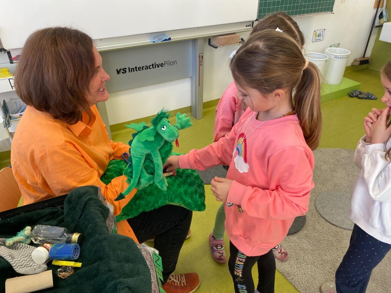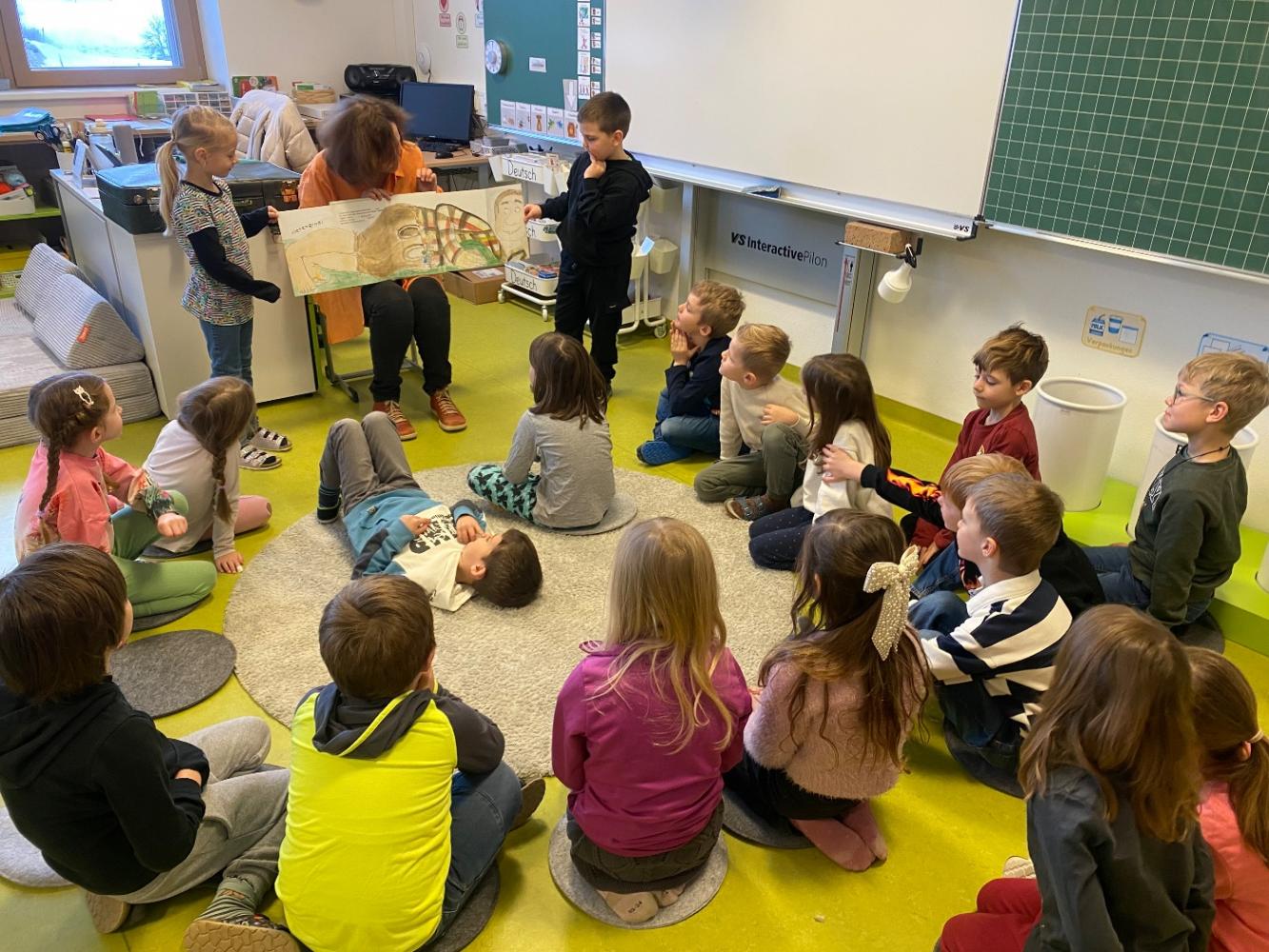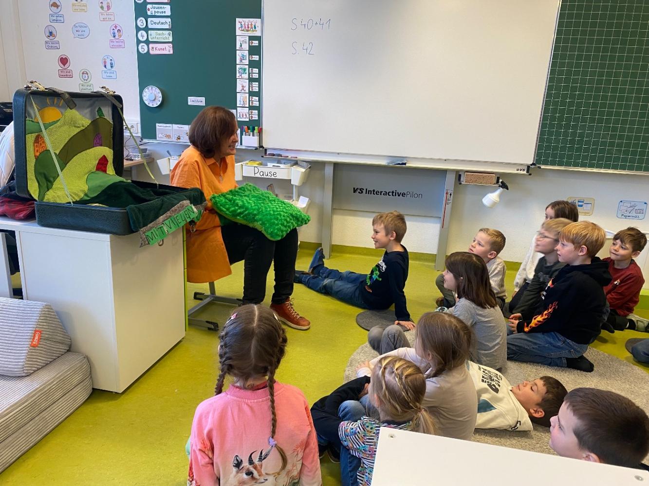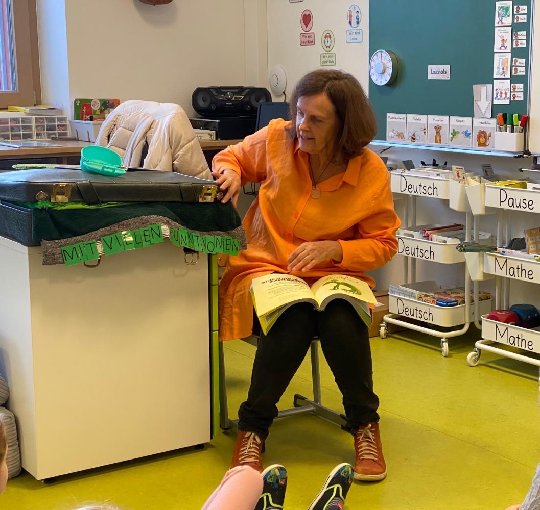Heute bekam die 1a Klasse Besuch vom Tiroler Kulturservice (TKS). Sabine begeisterte die Kinder mit einer spannenden und lustigen Lesung aus dem Buch „MIVIFU und der Riese“.