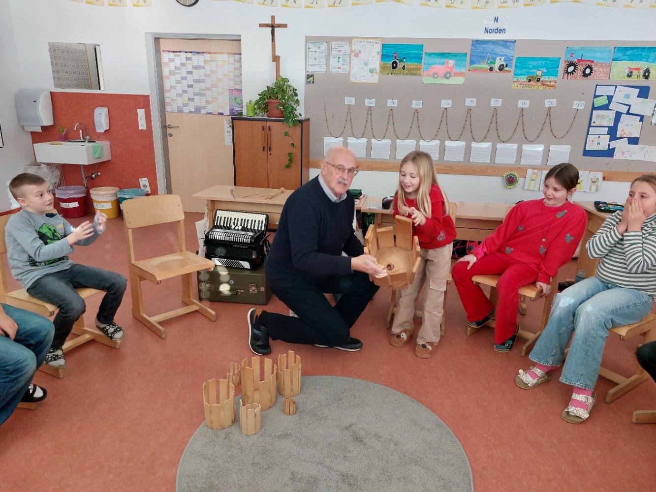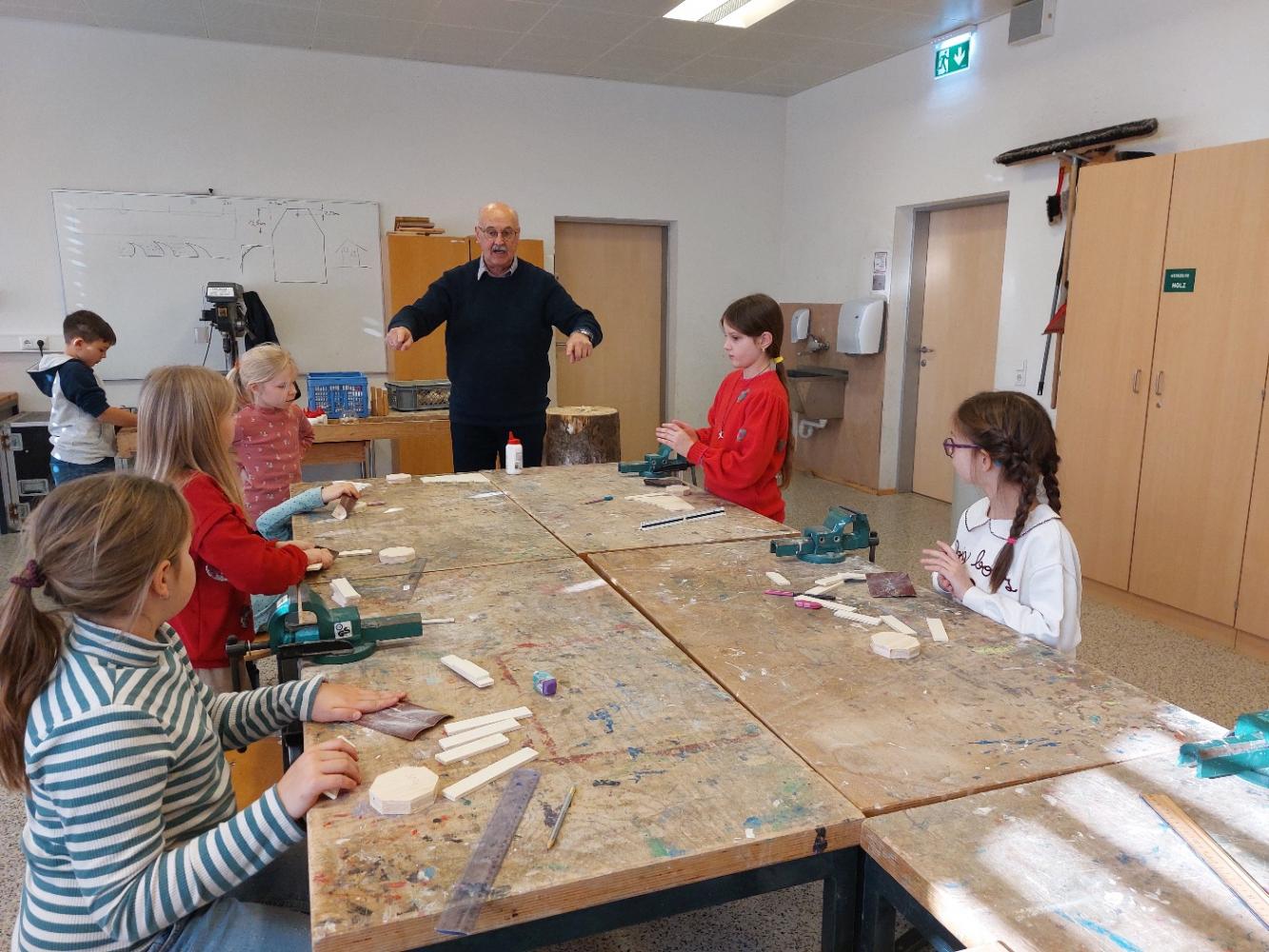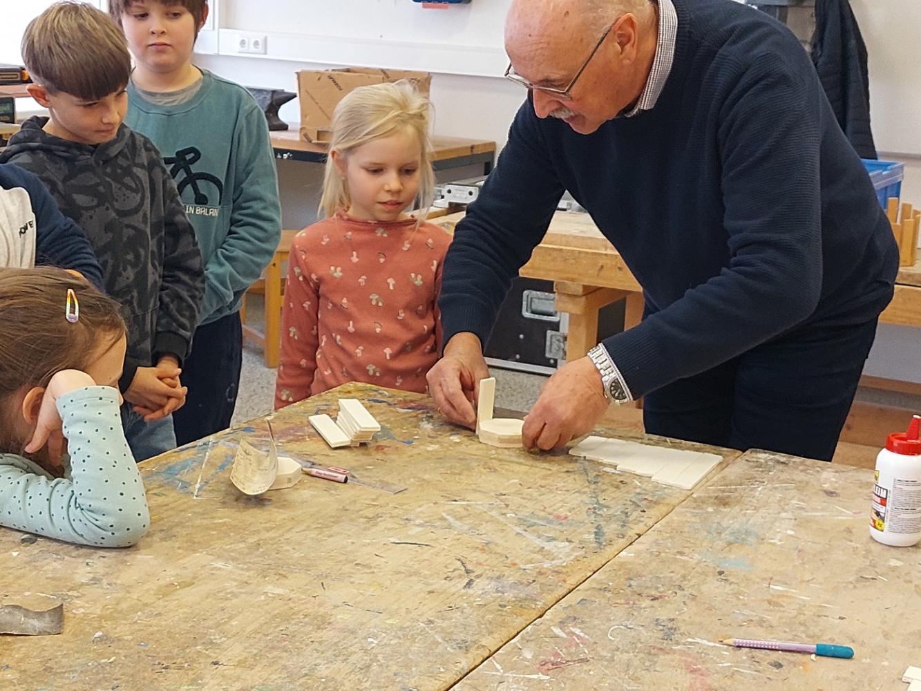 Unter fachkundiger Anleitung von Josef Fritz erfuhren die Schülerinnen und Schüler, wie aus einfachen Materialien ein funktionierendes Musikinstrument entsteht.