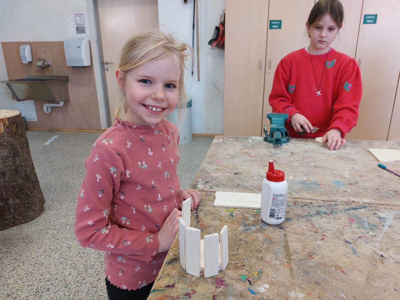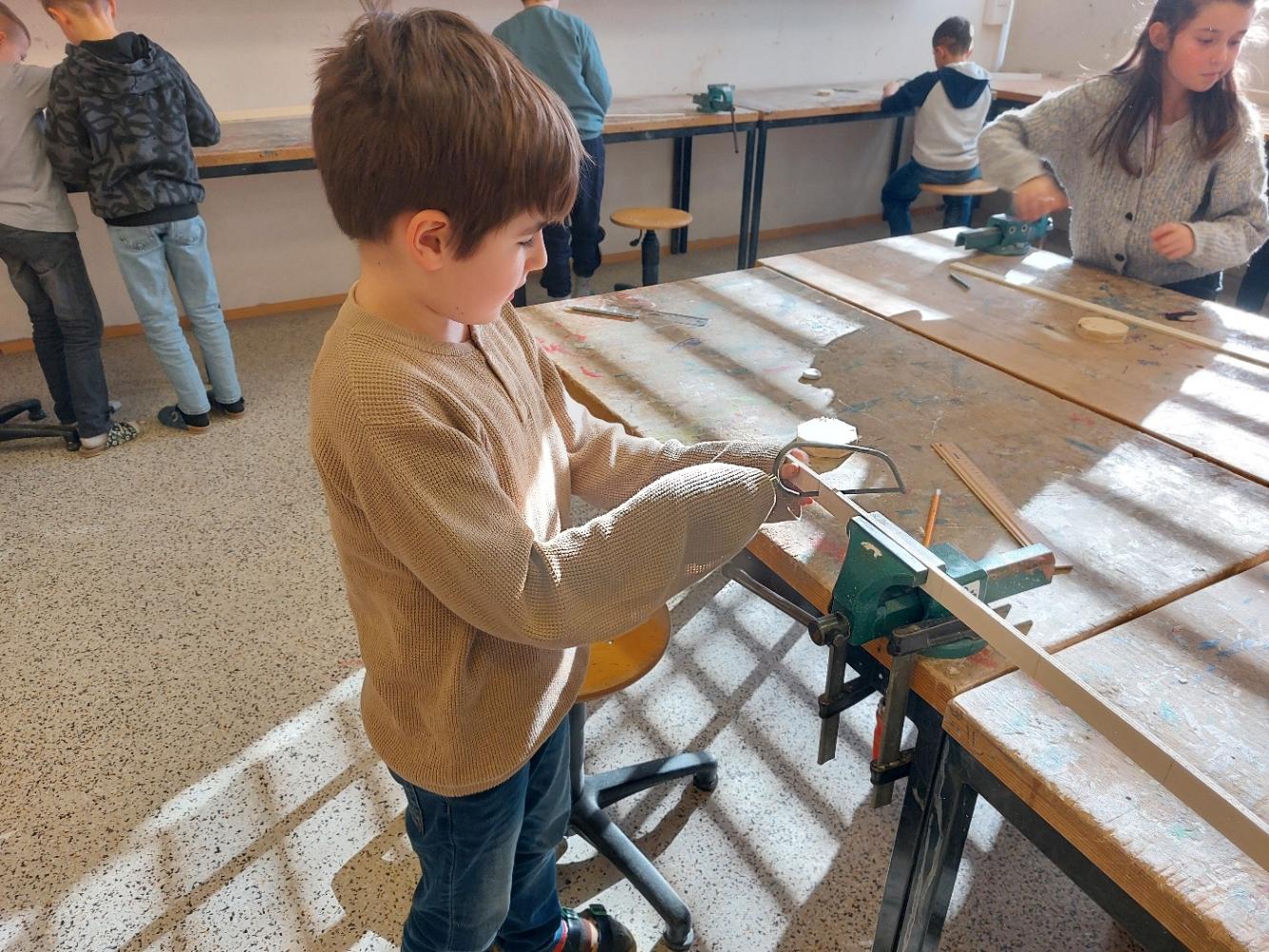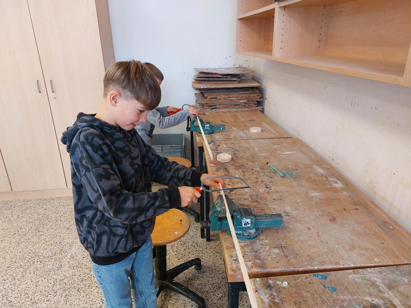Im Werkraum wurde dann fleißig gesägt, geschliffen und geleimt, bis jedes Musikinstrument fertig war.