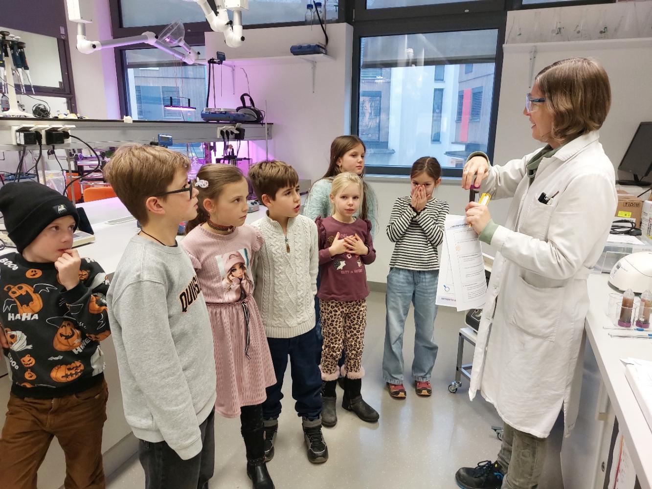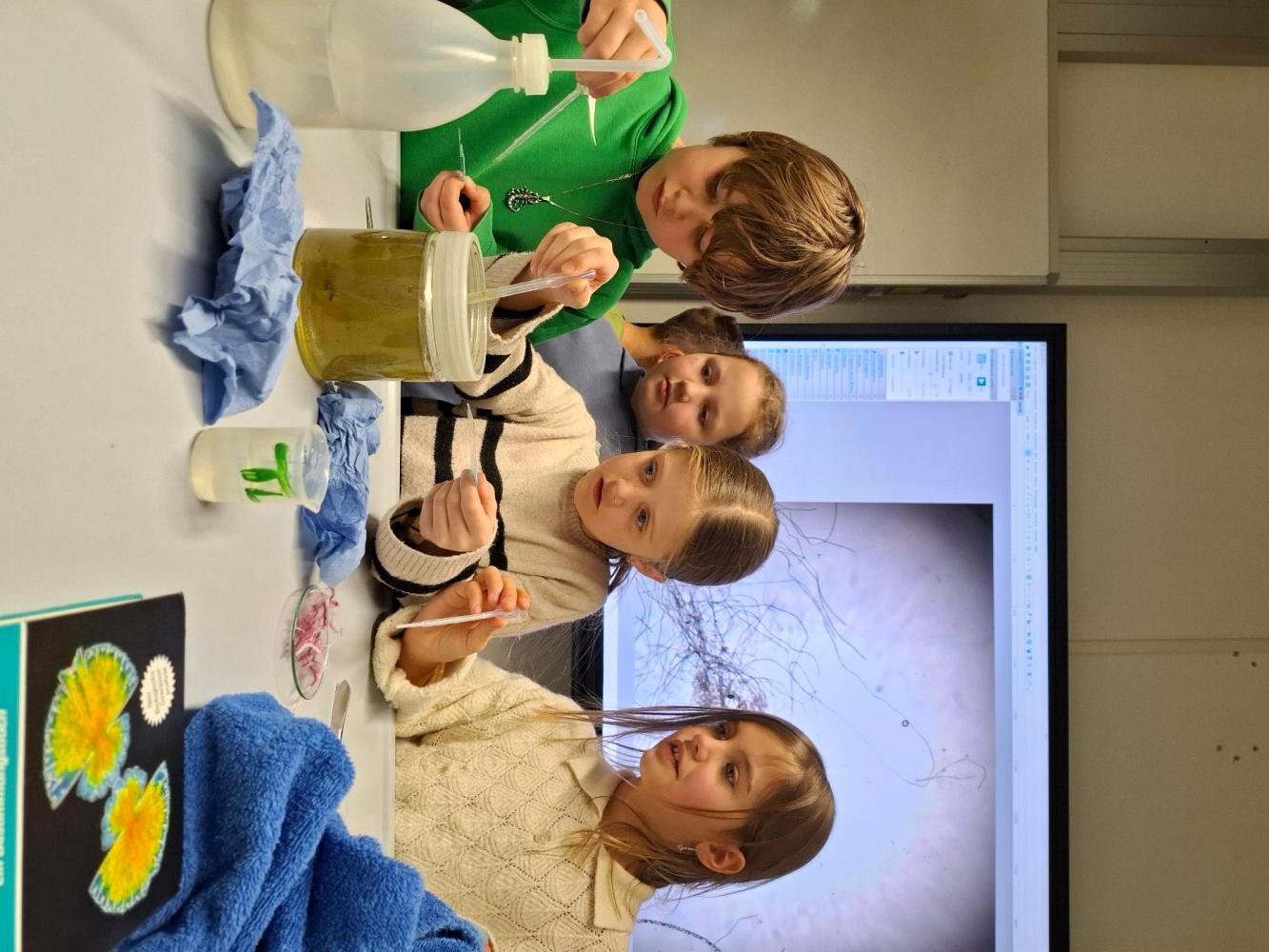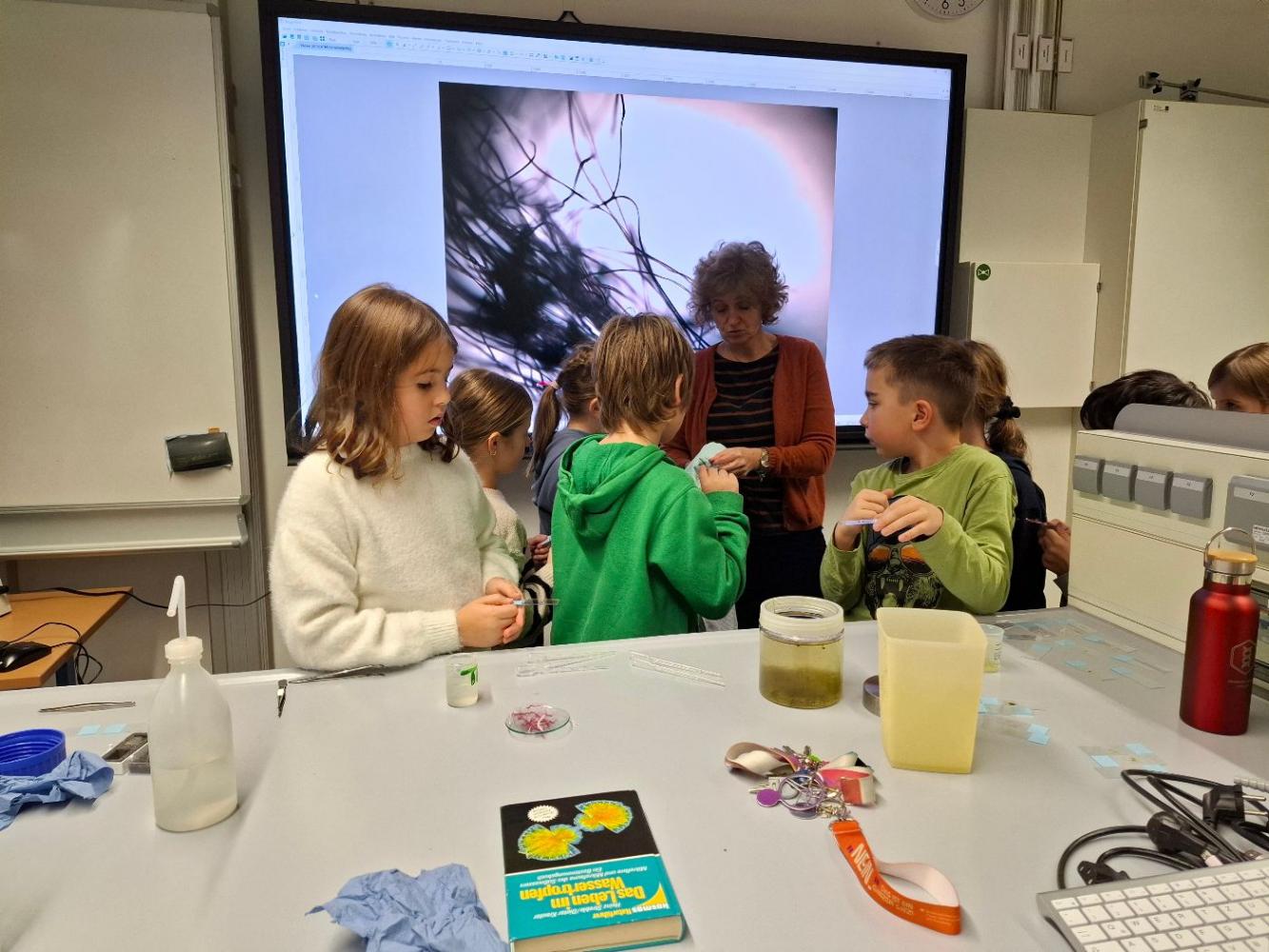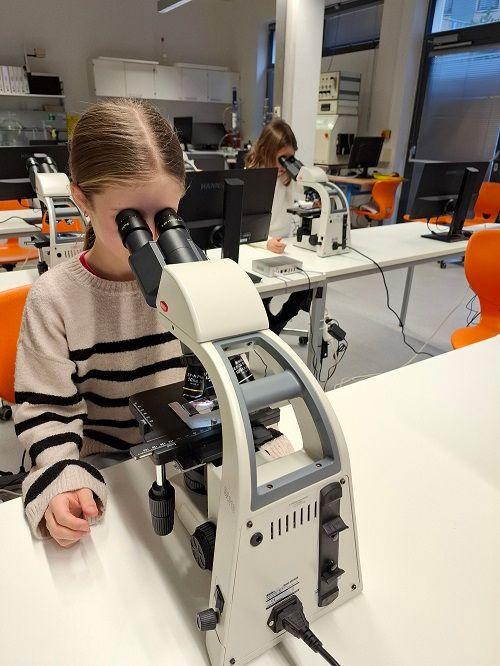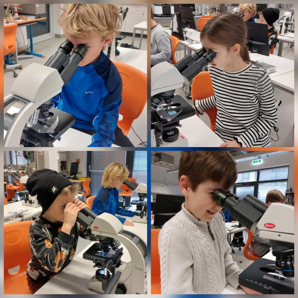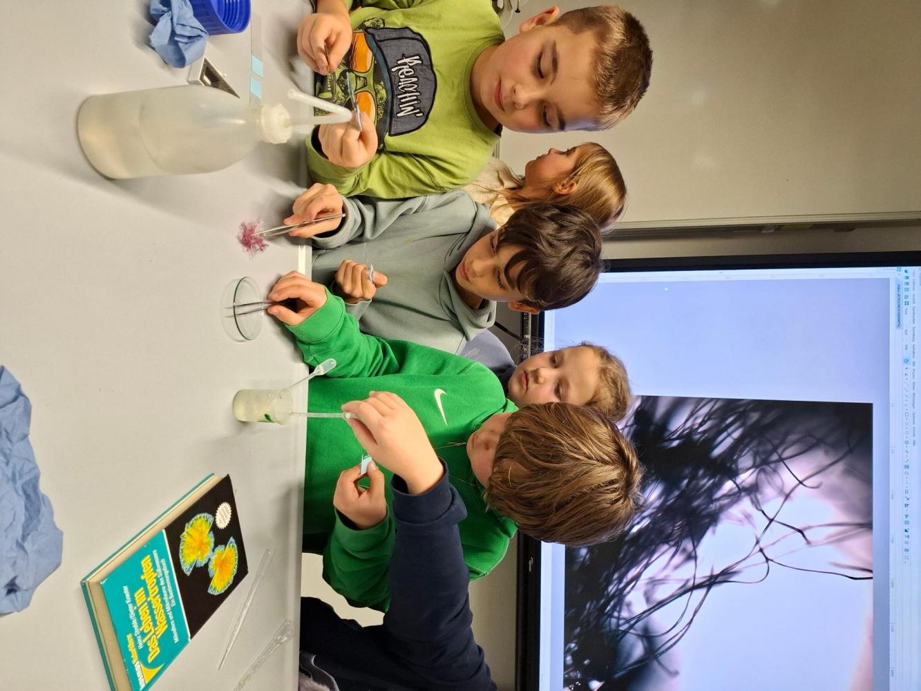 Ein besonderes Highlight war das Arbeiten mit dem Mikroskop. Mit großer Begeisterung betrachteten die Kinder unterschiedliche Proben und entdeckten dabei Details, die mit dem bloßen Auge nicht sichtbar sind.